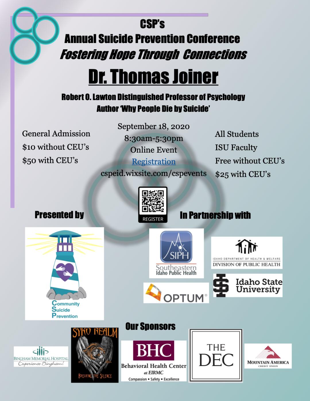Keynote speaker: Dr. Thomas Joiner