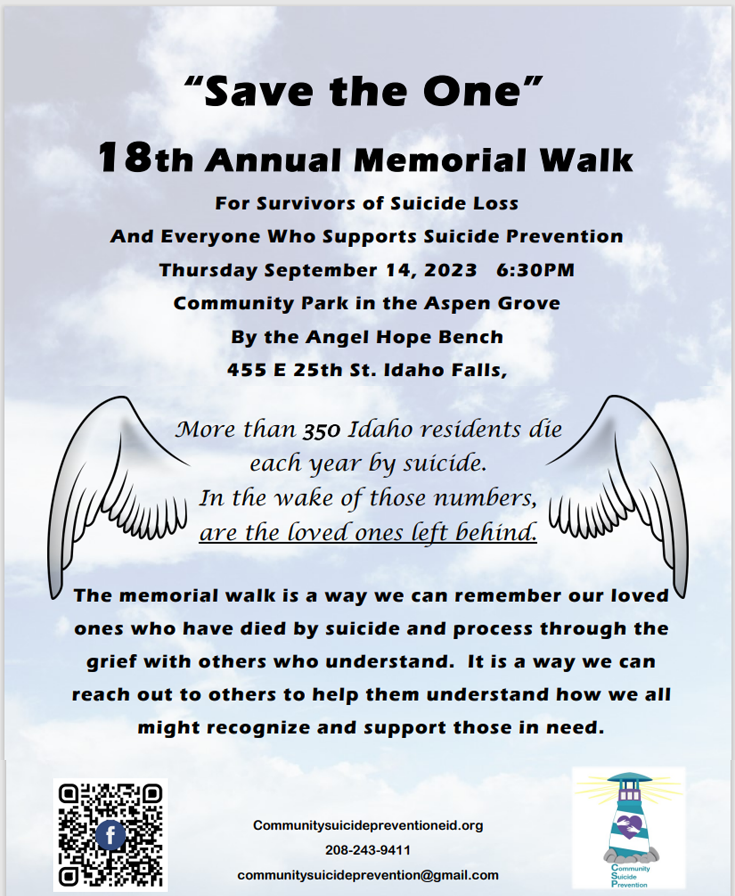 Community Suicide Prevention is sponsoring this walk in Idaho Falls for those who have lost loved ones to suicide and for survivors of suicide.