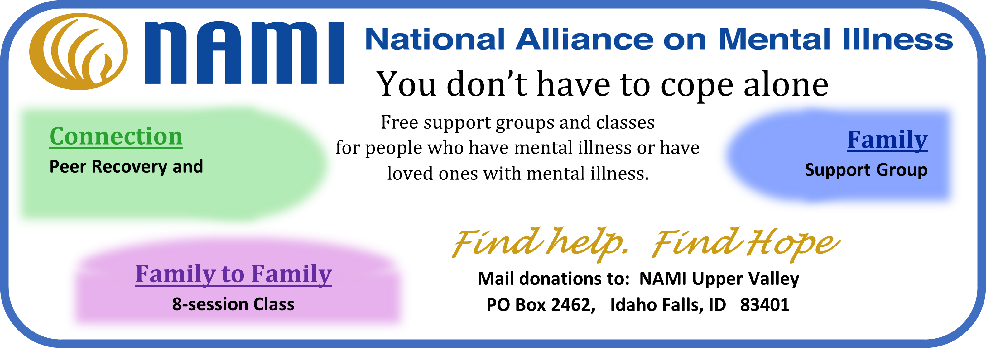 ICCU donated $500 through their Money Machine. Donate to Idaho Gives (idahogives.org) to help NAMI Upper Valley reach out more effectively to people in Eastern Idaho.